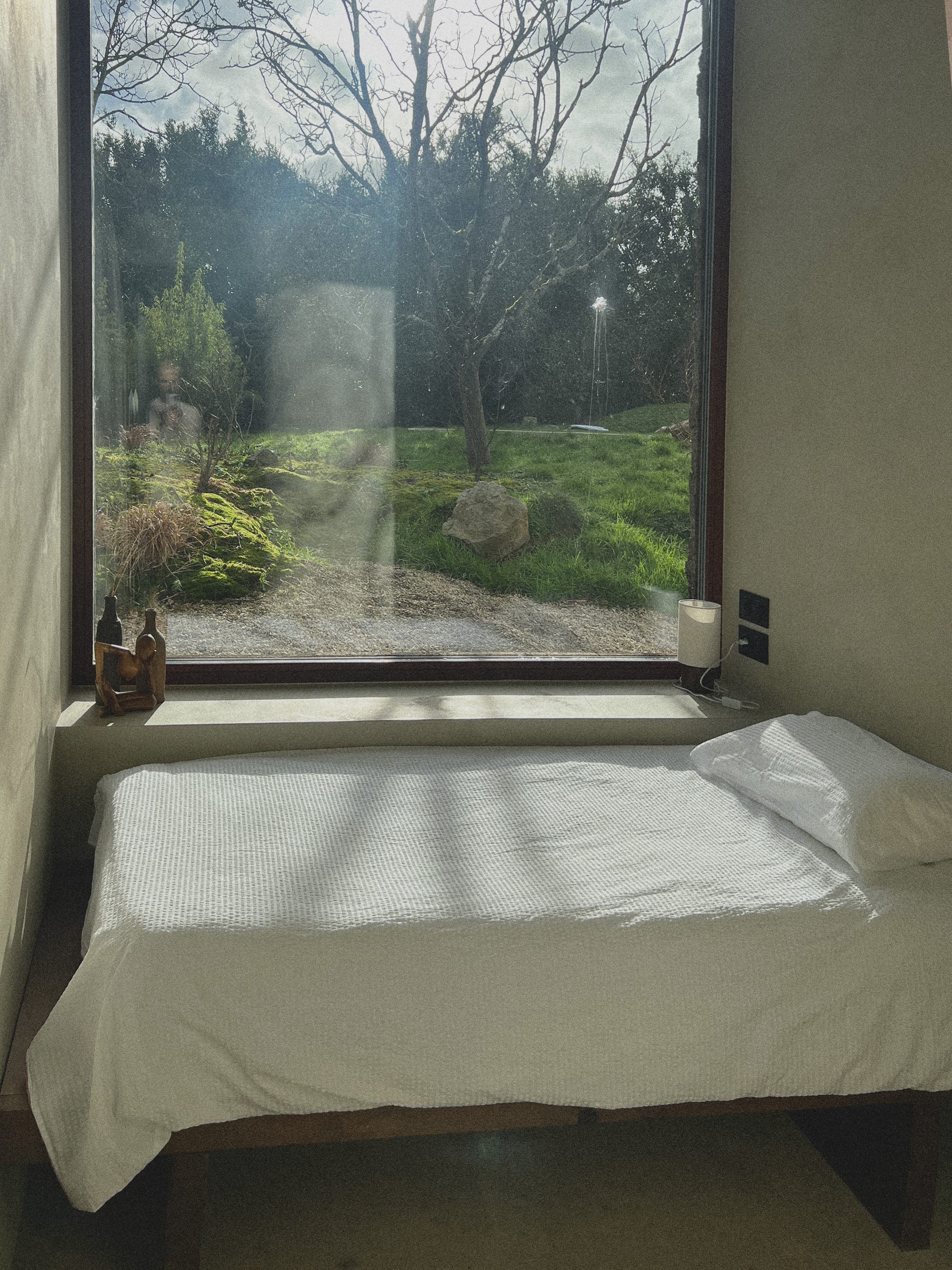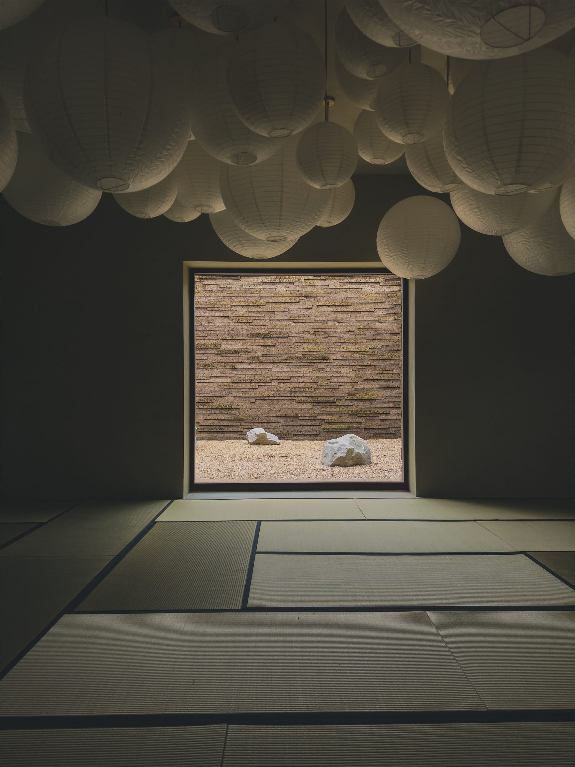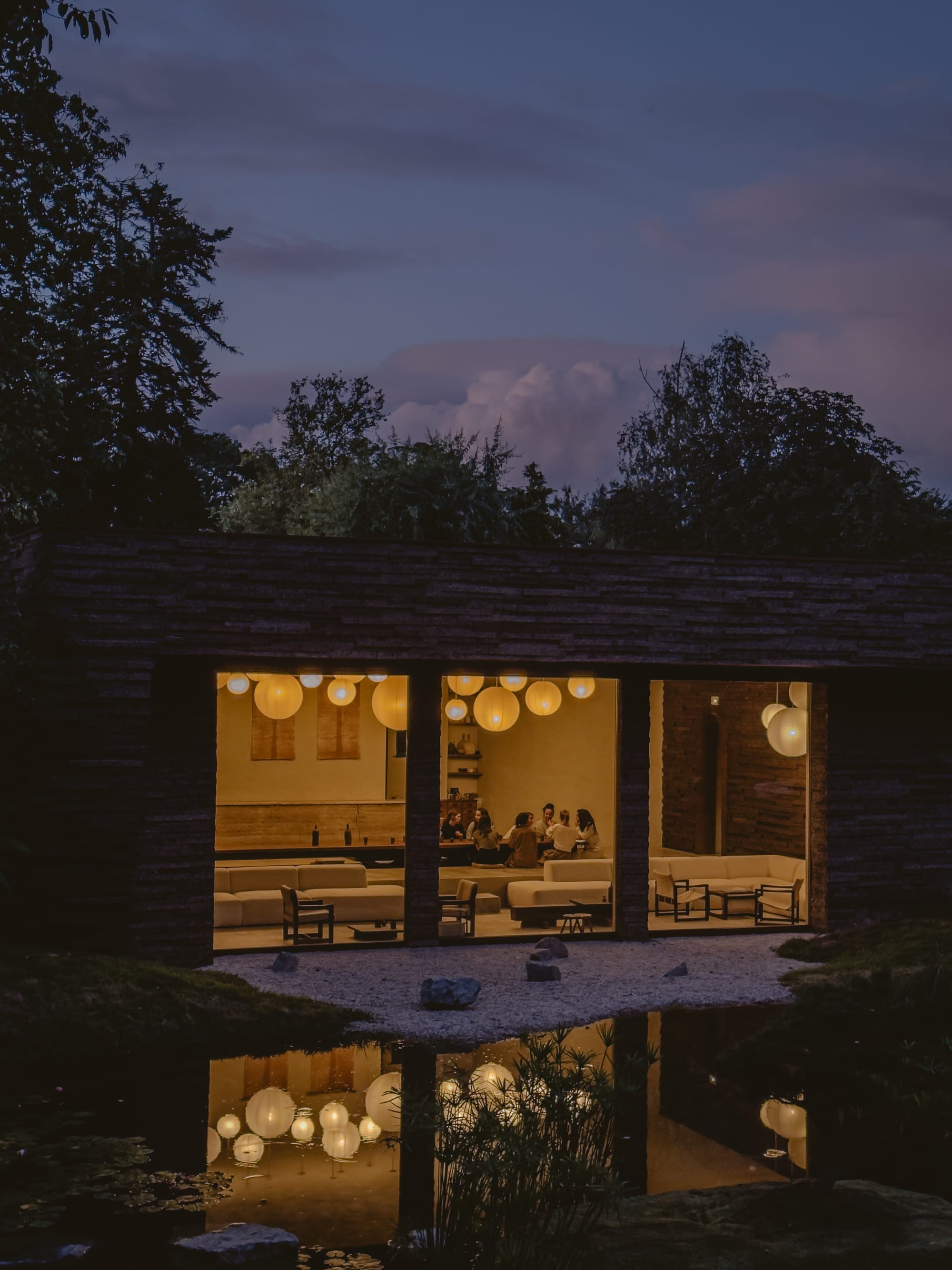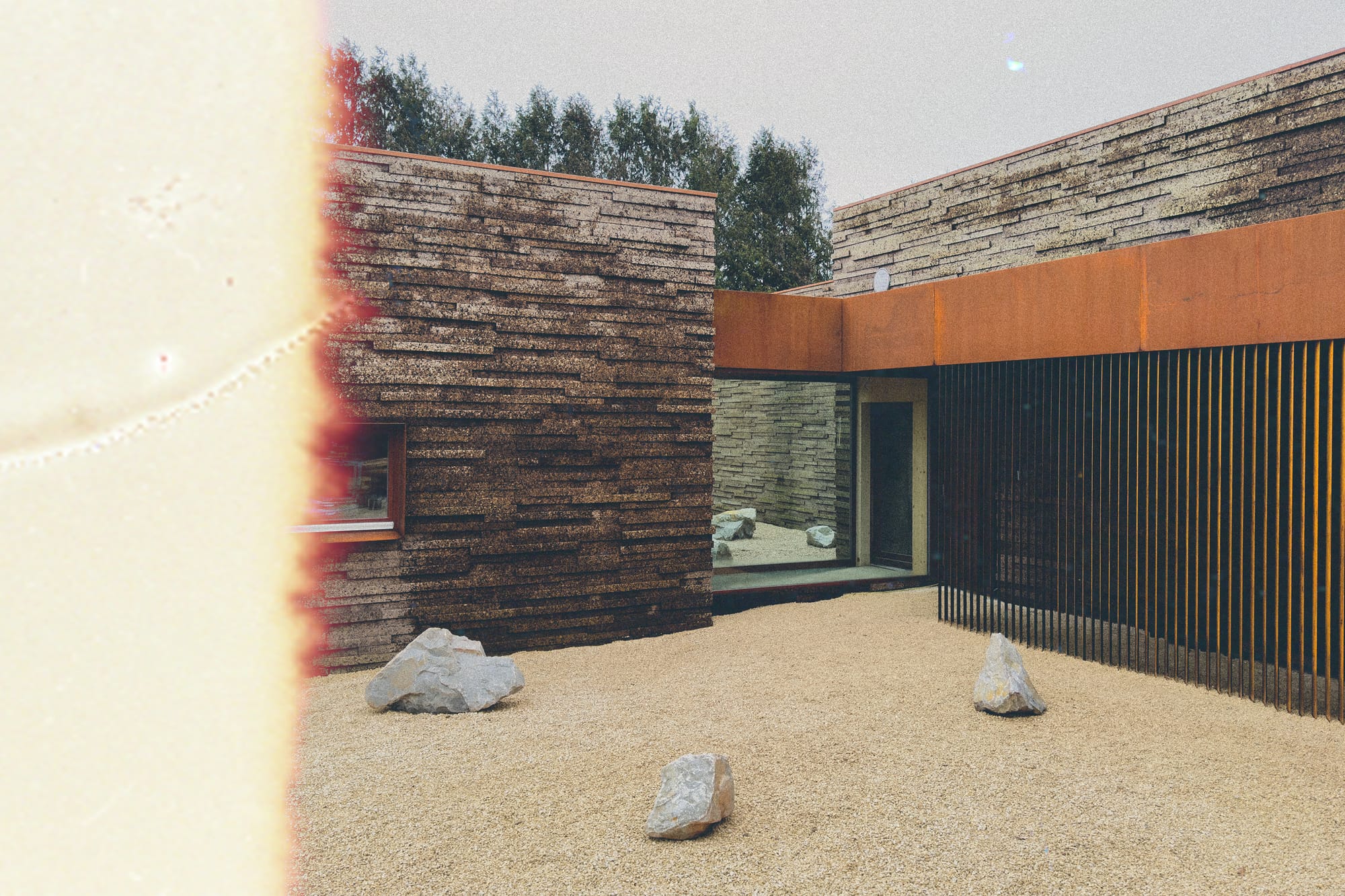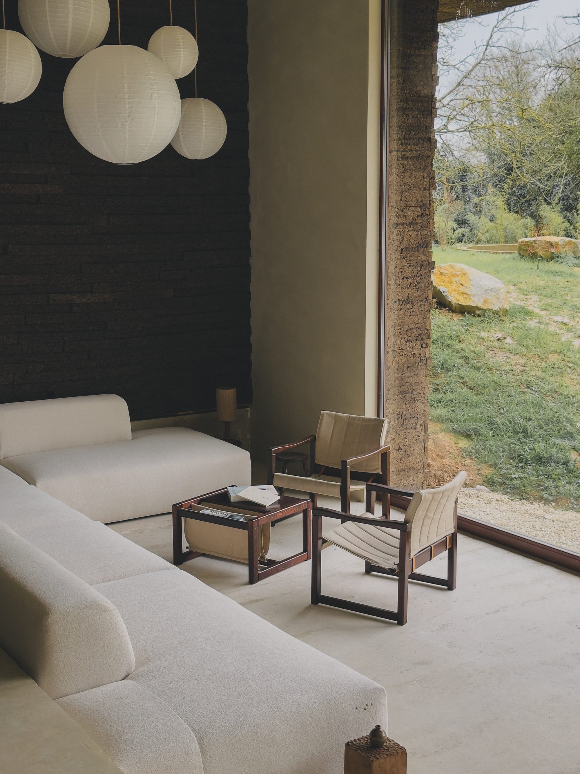 À deux heures à l’ouest de Paris, dans la campagne rasante d’Évreux, se niche Namo, un improbable ryokan. Caché au milieu des champs clairsemés par l’hiver, il surgit comme une anomalie douce dans le paysage normand. Le lieu est né de l’imagination et de la volonté sans faille de Jason, hôte et concepteur, animé d’une détermination indispensable pour faire advenir un projet que rien, a priori, ne destinait à cette terre. Il a façonné, de béton, de briques de liège et d’immenses baies vitrées, un volume pur et enveloppant, face à un jardin japonais vallonné à force de pelletées franches. Un lieu destiné aux retraites qu’il accueille. Le jeune homme, la trentaine doucement entamée, vous invite en ce havre de paix avec une douceur et un sourire qui irrigueront l’ensemble du séjour.