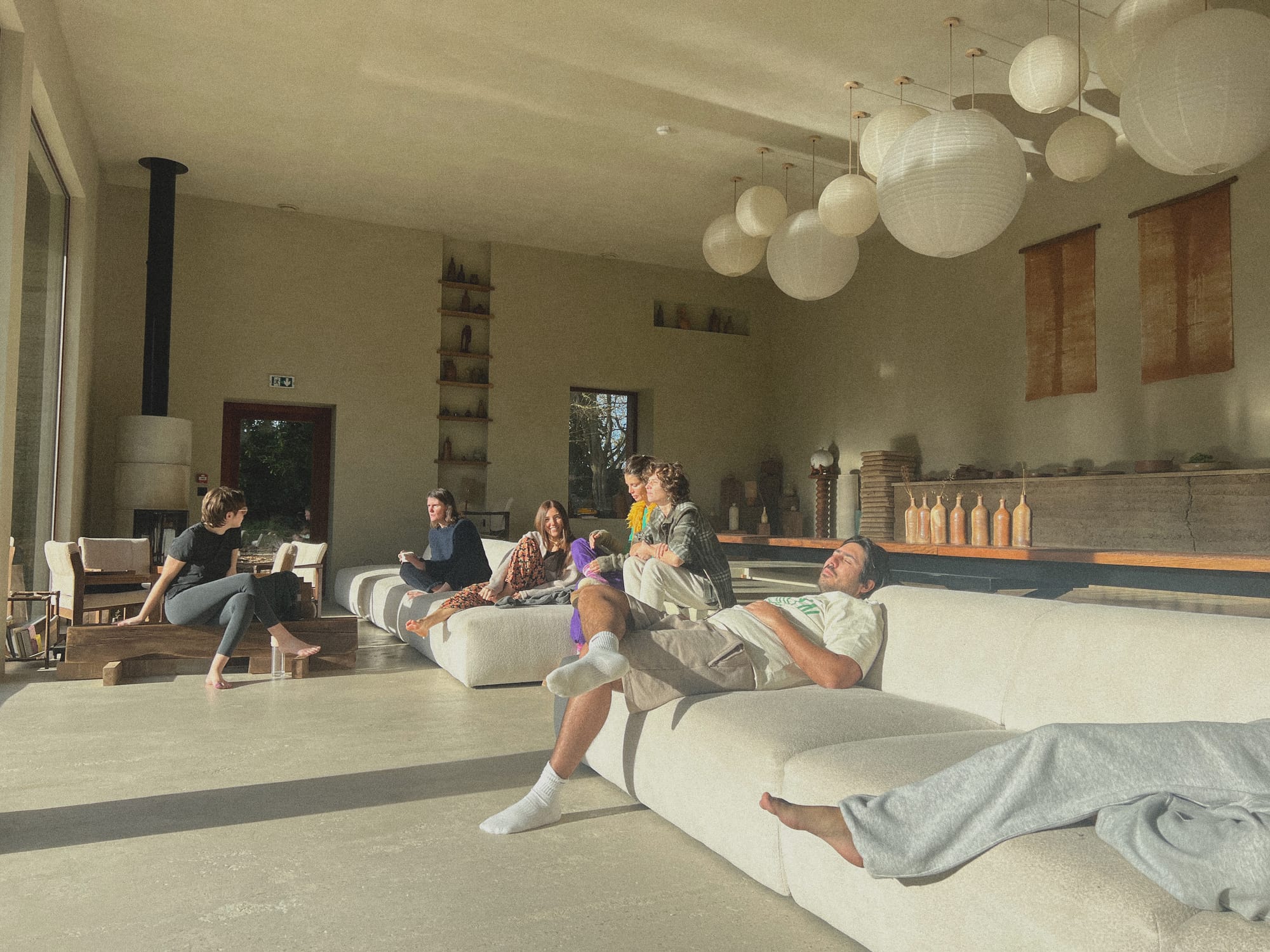 Notre initiateur accueille les seize participants de sa retraite avec un sourire et une bienveillance profonde, par leur prénom, comme s’il recevait des amis de longue date. Les yeux pétillants, la posture élégante. Prêt à nous rappeler à quoi sert un corps, justement, et à en révéler les propriétés alchimiques. À seize heures, je suis parmi les premiers arrivés. Je dévisage d’une joyeuse curiosité les participants un à un et découvrirai plus tard, au fil de nos nombreuses discussions dînatoires, la surprenante richesse et la variété de leurs univers. Derrière un écran, j’aurais pu juger chacun d’entre eux, comme on aime coller des étiquettes sur Instagram. Mais cette semaine, portée par la proximité, serait celle de la bienveillance, du respect et de la découverte profonde de ce qu’est un échange humain pur et humble. Un exercice malheureusement en voie de disparition, tant les fragiles cercles digitaux, spirales infernales, ont remplacé la force des vraies communautés. Vivre (vivre!) ensemble, sans sollicitation parasite, même une semaine, rappelle à quel point notre chair en a désespérément besoin.
